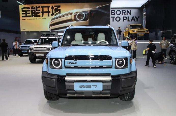 外观方面,iCAR V27以刚劲线条勾勒出辨识度十足的盒型车身。前脸部分采用饱满的保险杠与圆形头灯组合,融复古气质与现代力量于一体。左侧灯组旁镶嵌有深色处理的“iCAR”徽标,凸显独特个性。