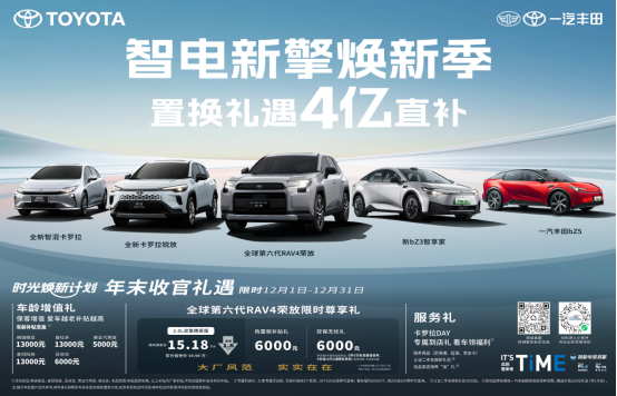 2025年年终临近,一汽丰田亮点纷呈,旗下多款新车与IT'S TiME技术品牌密集焕新,展现出强劲的市场活力与创新动能,在年终冲刺阶段进一步彰显其作为“合资新力量”的引领姿态。