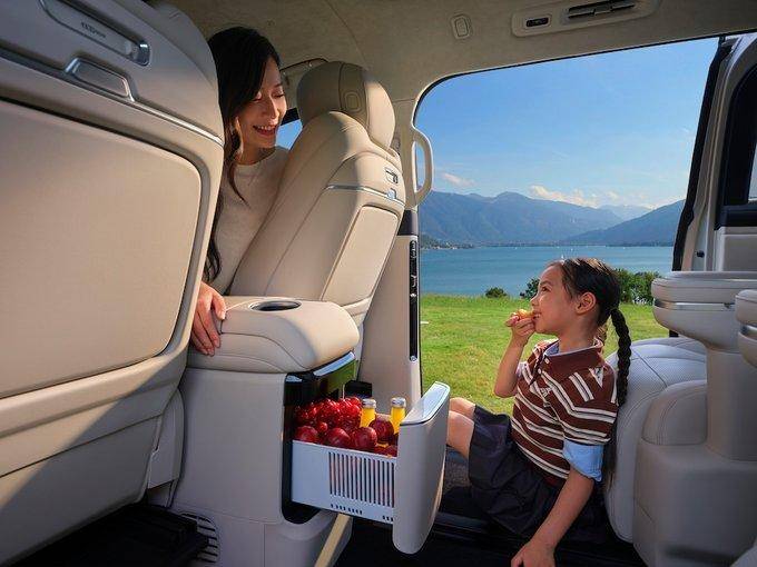 吉利银河V900云感SPA座椅背软坐弹,久坐不累,加热、通风、记忆、SPA级按摩等豪享配置一应俱全,且二三排都可以躺倒,让长途出行也如在家中客厅一样放松惬意。Flyme Sound无界之声27扬声器系统,配合后排娱乐巨幕,打造沉浸式移动影音厅,AI无麦K歌功能,更让全家一路欢声笑语,告别长途沉闷。超宽温域冷暖箱可在-6℃至50℃之间精准控温,无论是夏天的冰淇淋,还是冬日热饮,随时满足全家味蕾。二排双小桌板不仅是移动办公桌、零食分享台,还可化身“移动学习桌”,让孩子行程中也能安心补作业,游玩学习两不误。