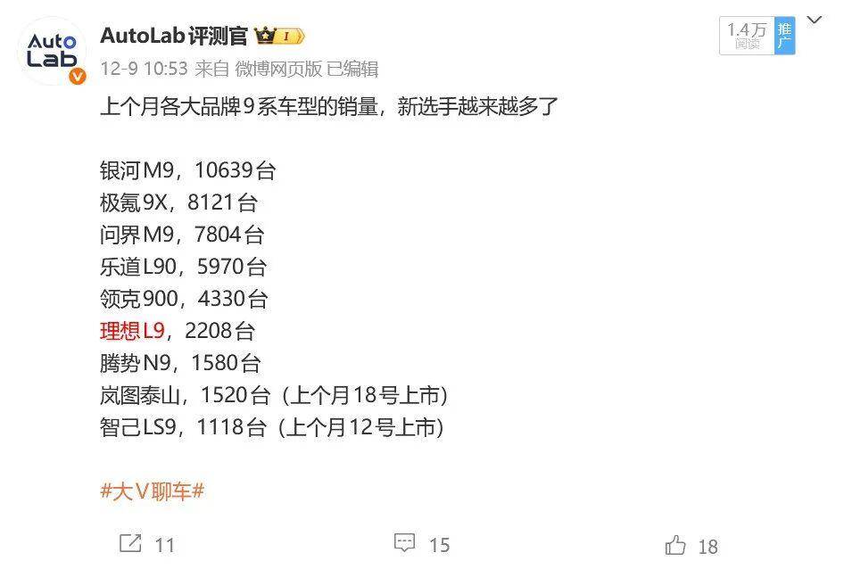但随着市场竞争格局发生变化,理想L9的销量也随之下滑。