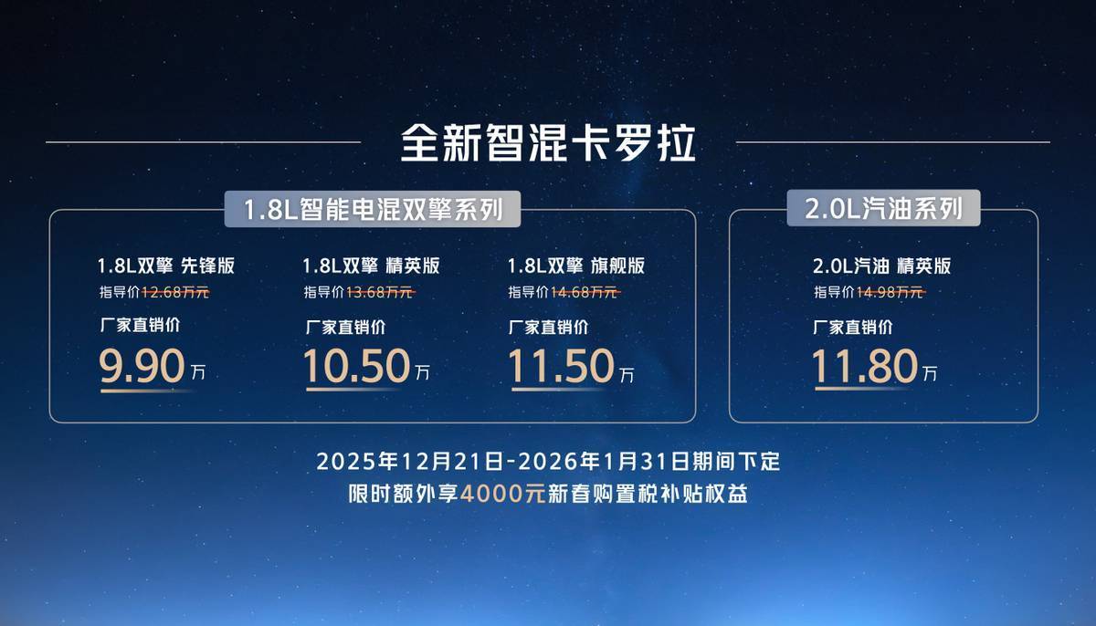 售价9.9万元起,全新智混卡罗拉焕新上市