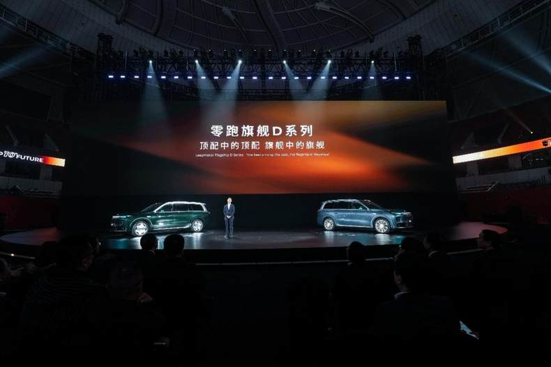 发布会的核心亮点当属零跑D系列双旗舰的重磅亮相。作为零跑“向上,领跑”战略的关键载体,D系列基于最新旗舰D平台打造,汇聚多项行业首创技术。其中,D19作为首款科技豪华旗舰SUV,继10月外观首秀后迎来内饰全球首发,其座舱采用大面积软包材质与茶多酚环保工艺,配备半苯胺头层真皮座椅、120°真零重力座椅与天鹅绒顶棚,营造极致豪华氛围。该车搭载双8797芯片与端侧大模型智能座舱,算力可达1280TOPS,支持车位到车位的VLA辅助驾驶功能;动力方面提供增程与纯电双选择,增程版基于800V高压平台实现500km纯电续航,纯电版采用1000V高压平台,续航可达720km,0-100km/h加速进入3秒级。