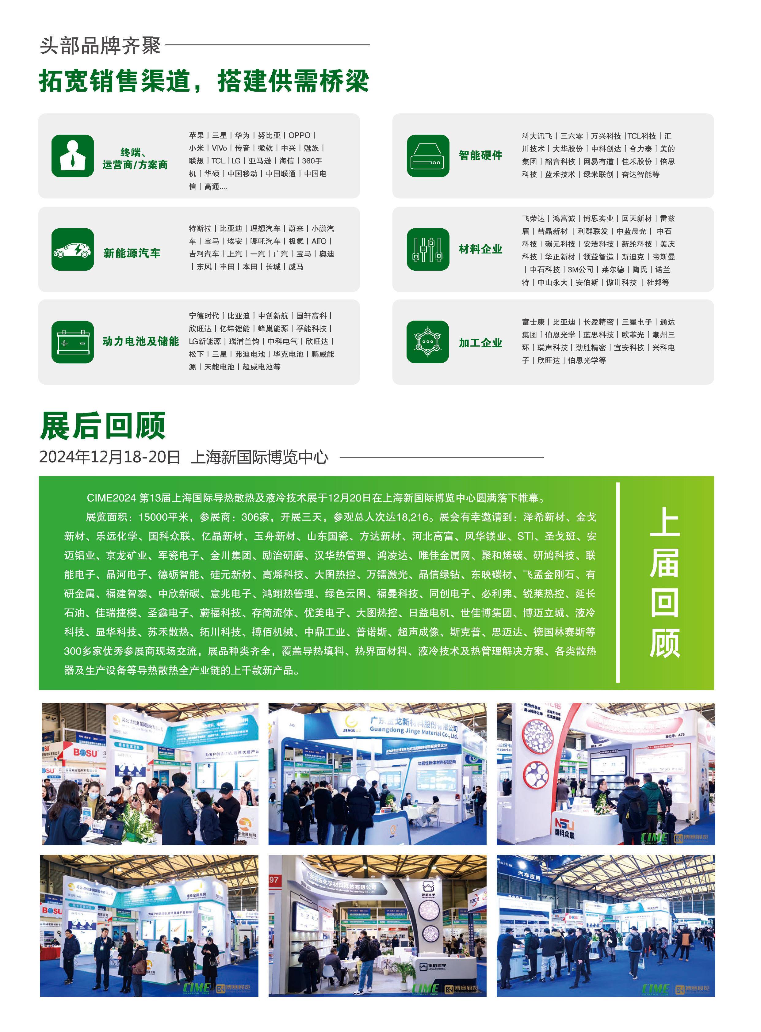 技术焦点:展示液冷技术、VC均热板、液冷板等最新产品,涵盖消费电子、5G、人工智能、动力电池等多个领域的热管理解决方案、材料与设备:导热材料(如石墨烯、相变材料)、热界面材料、液冷服务器、冷却分配单元等
