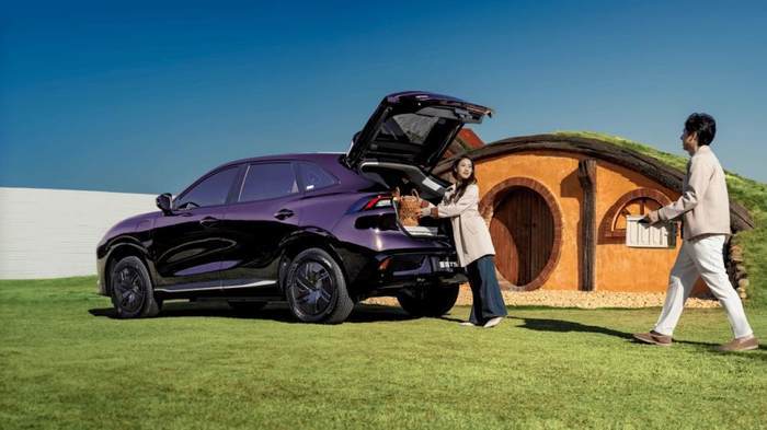 车身侧面采用柔和圆润的线条勾勒,双段式腰线的独特设计营造出别样视觉感受,使得前后侧翼子板呈现出宽体车身的既视感。不仅如此,新车配备机械式车门把手,搭配 17 英寸封闭式低风阻轮圈,高配版本车型还支持选装升级为 18 英寸规格轮圈。