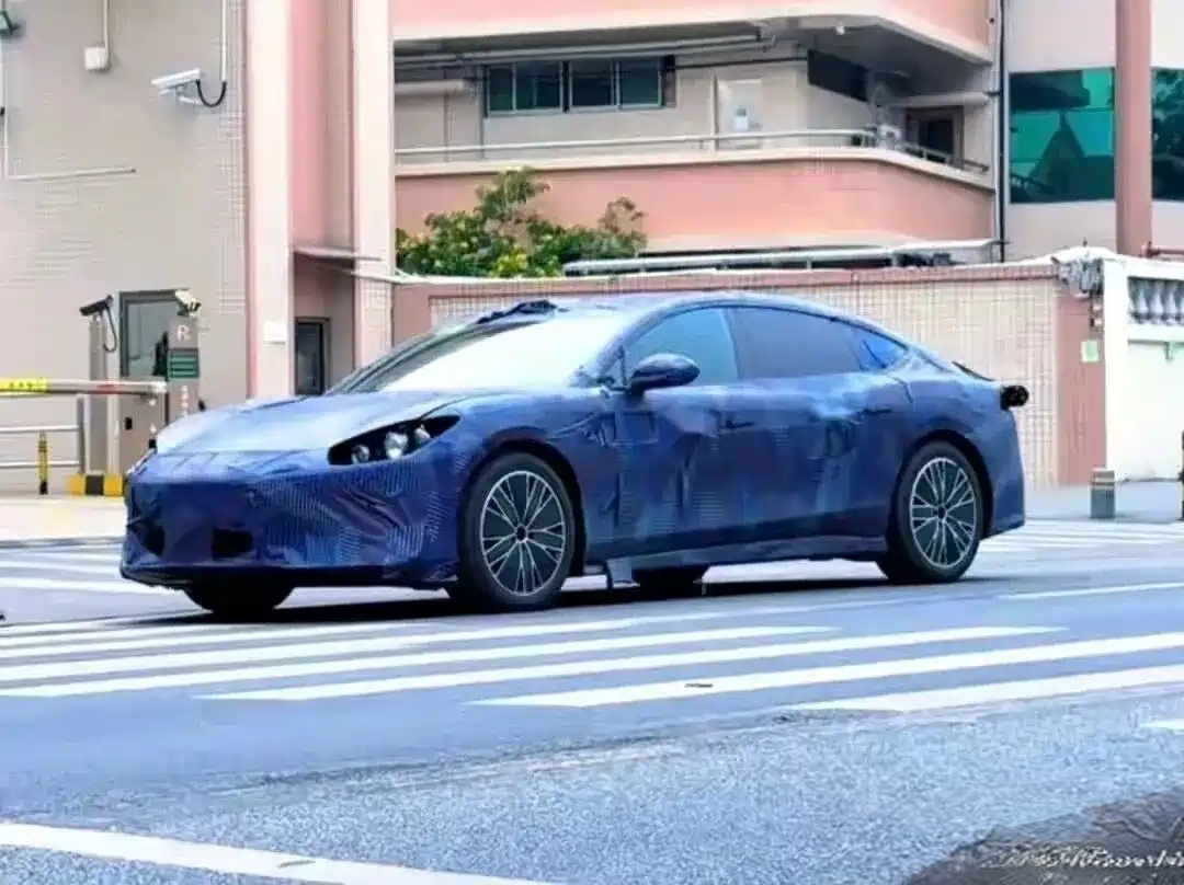 从图中可以看到,新车的造型非常动感,同时得益于低趴的机盖设计,运动感同样不俗。大灯则是椭圆形的设计,下方保险杠处则有大尺寸进气口设计。另外,车顶还有激光雷达,所以高阶辅助驾驶不用担心。