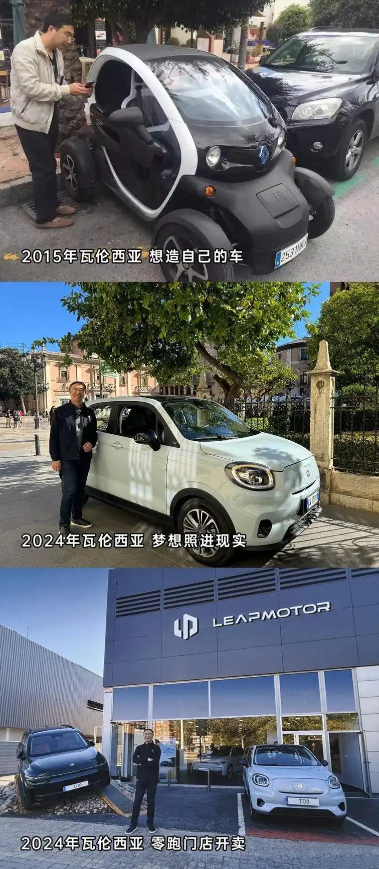 值得一提的是,2024年9月,朱江明发了一条朋友圈:“九年后重返西班牙瓦伦西亚。”配图是他九年前用手机拍摄雷诺Twizy、此刻同街头零跑T03的合影以及自己在瓦伦西亚零跑门店前的三张照片拼接而成。