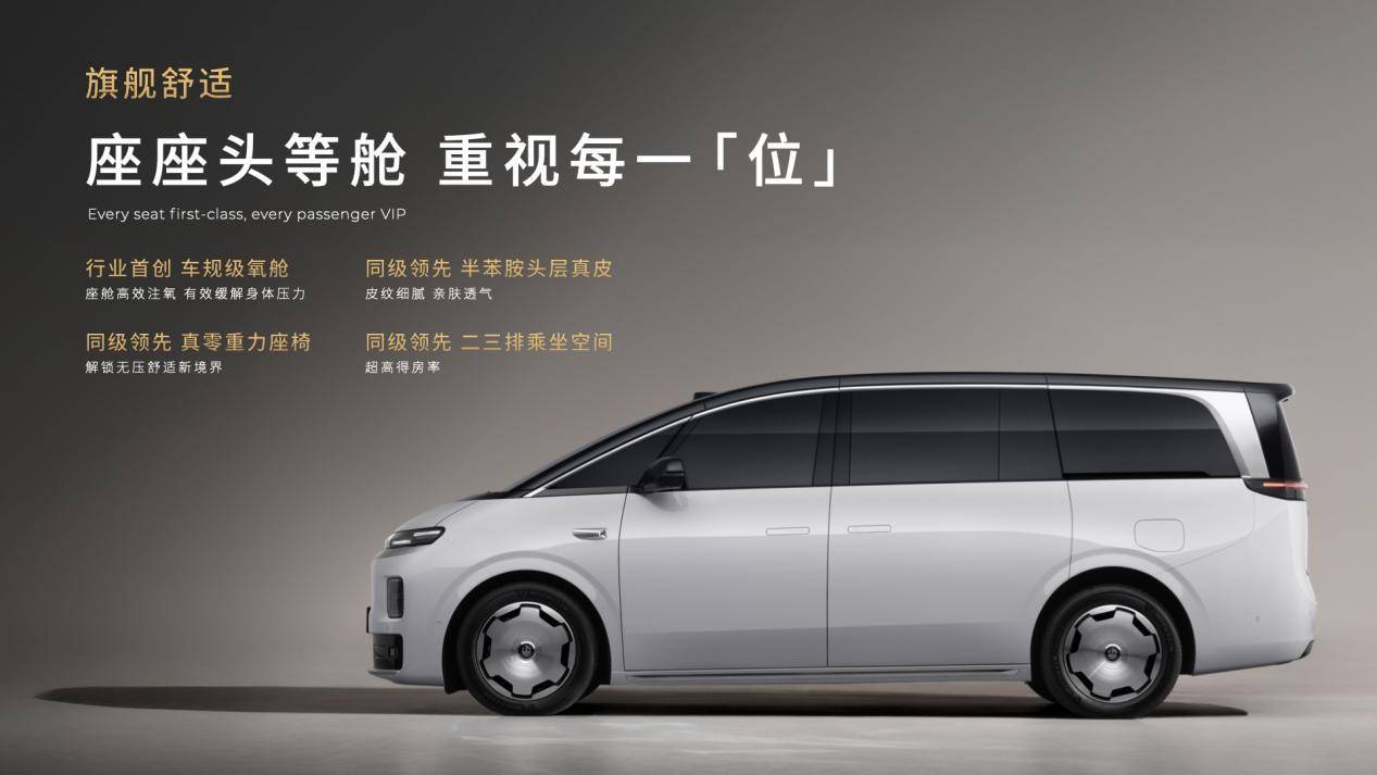 舒适体验上,D99行业首创车规级氧舱系统,搭配半苯胺头层真皮座椅与真零重力座椅,二三排乘坐空间同级领先。基于用户对家庭出行与商务接待的双重需求,新车优化了空间布局,确保每一位乘客都能获得平等的舒适体验,细节处的镀铬套件与软包设计,彰显商务豪华气质。