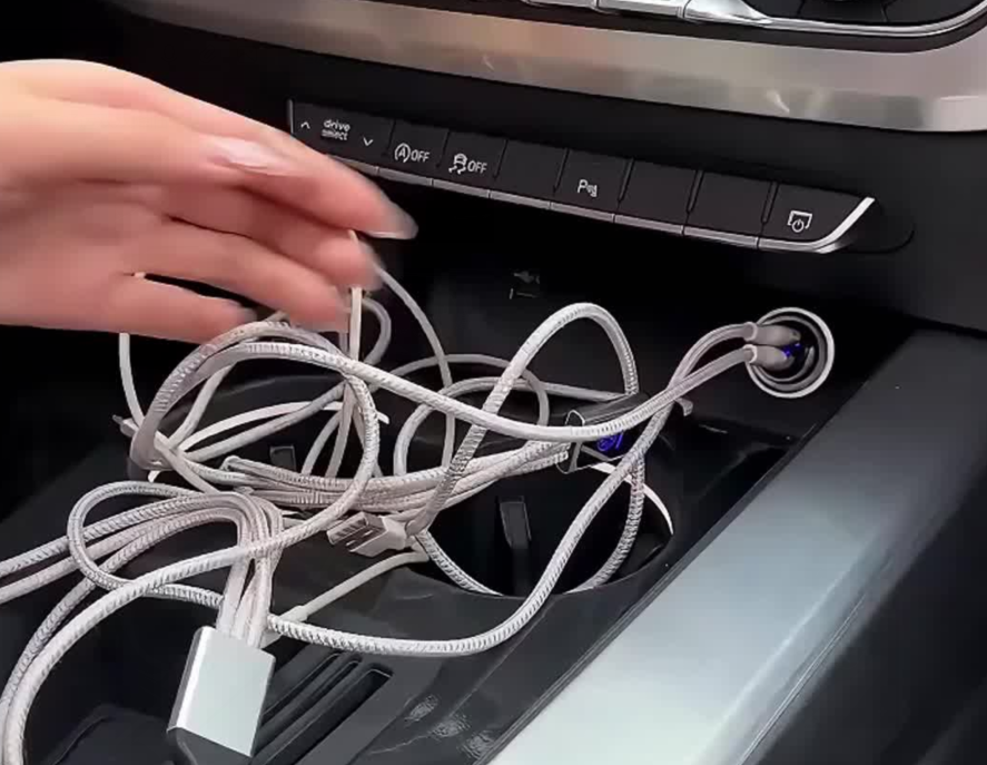 一旦绝缘皮老化开裂则有可能导致里面的导线搭线短路,一旦短路则难免会在短时间内起火;而且有一些司机喜欢用所谓的“一拖三”或“一拖更多”的拓展坞,其从车辆12V母座取电,之后可以给许多电子设备充电,或者给行车记录仪等设备持续供电。由于“一拖三”会高频率被使用,许多设备的充电线束会被凌乱的塞进扶手或者储物格里;这些线束更容易因长时间的弯折和低温出现绝缘层老化开裂,短路起火的概率会比较高。