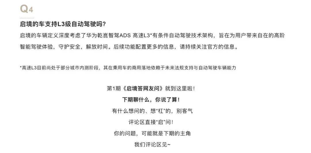 毕竟,L3虽然已经足够创新和王牌,可它在启境汽车上毕竟还只是预埋的技术架构。