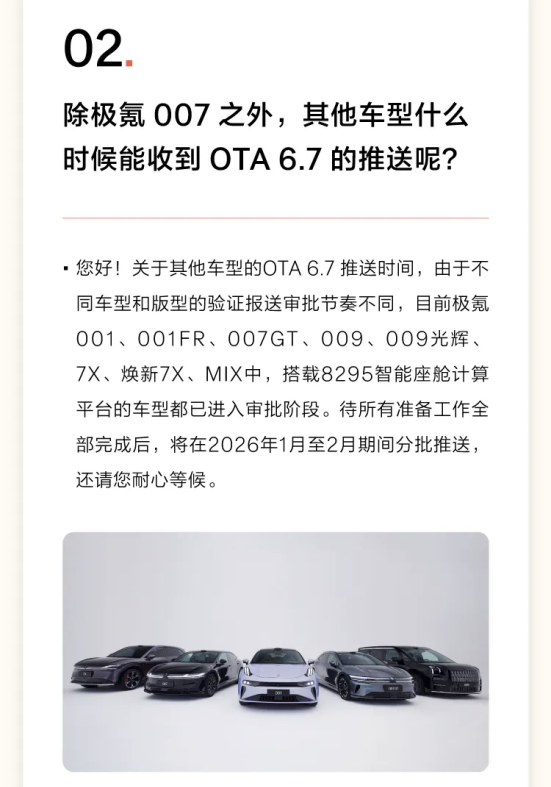 结合最新一期《极氪零距离》对购置税政策、用户活动规划等问题的直面回应:针对007车主关注的OTA升级,官方坦诚说明了将直接推送OTA 6.7新版本,还公布了具体的推送时间表;面对冬季用车需求,极氪为001 WE版老车主推出冬季温度包限时体验;用户关心的“先付款后验车”流程,也详细说明了三重保障机制等等。极氪正通过持续的行动,将“透明沟通”落实为可感知的服务实践,构建与用户之间的信任桥梁。