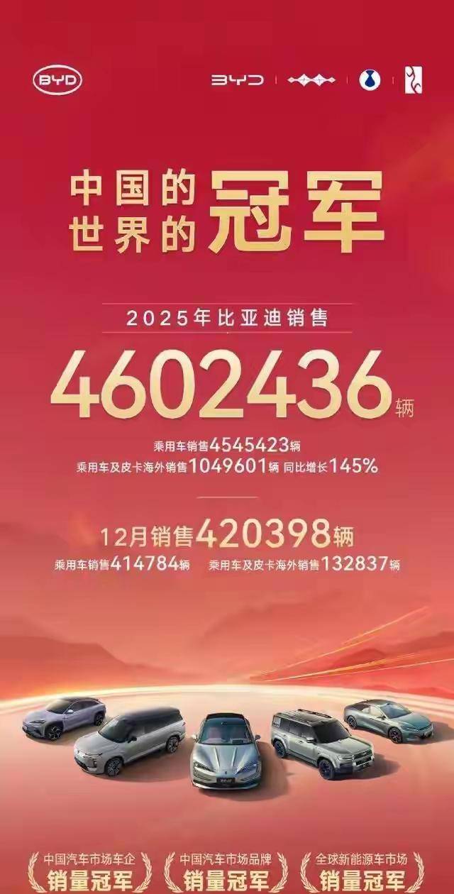 海外市场成为比亚迪销量增长的关键。2025年,比亚迪海外销量实现跨越式增长,首次突破100万辆大关,显示出其品牌和产品在全球范围内的强劲吸引力。