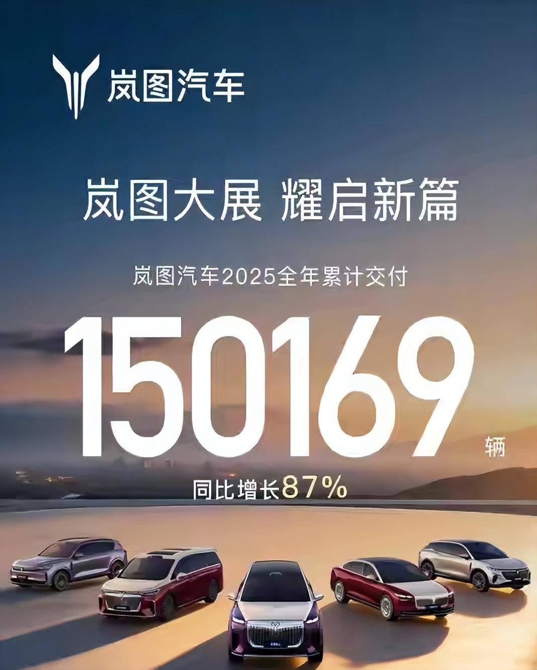 在刚刚过去的2025年,岚图汽车全年累计销量达到了150169辆,同比增长87%。从岚图汽车2025年总销量同比增长87%来看,要比2024年的市场表现好很多,其走量车型主要集中在梦想家、岚图FREE以及岚图知音。