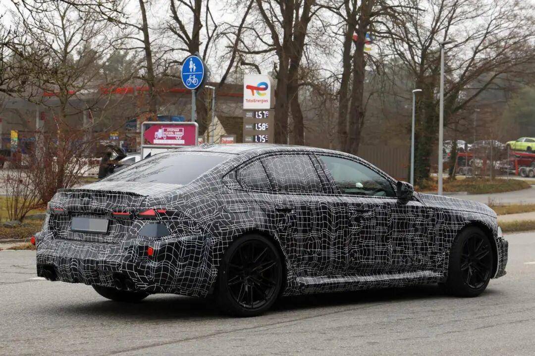 就在这辆旅行车出现几天后,一辆M5小改款也现身了。其车头的照片再次证明,新款5系将摒弃有些激进的新风格,回到了更为稳妥、容易让人接受的设计。而这辆行驶中的新款M5还向我们展示了尾部的主要变化:尾灯点亮时其内部的发光图案将与新世代3系非常相似。