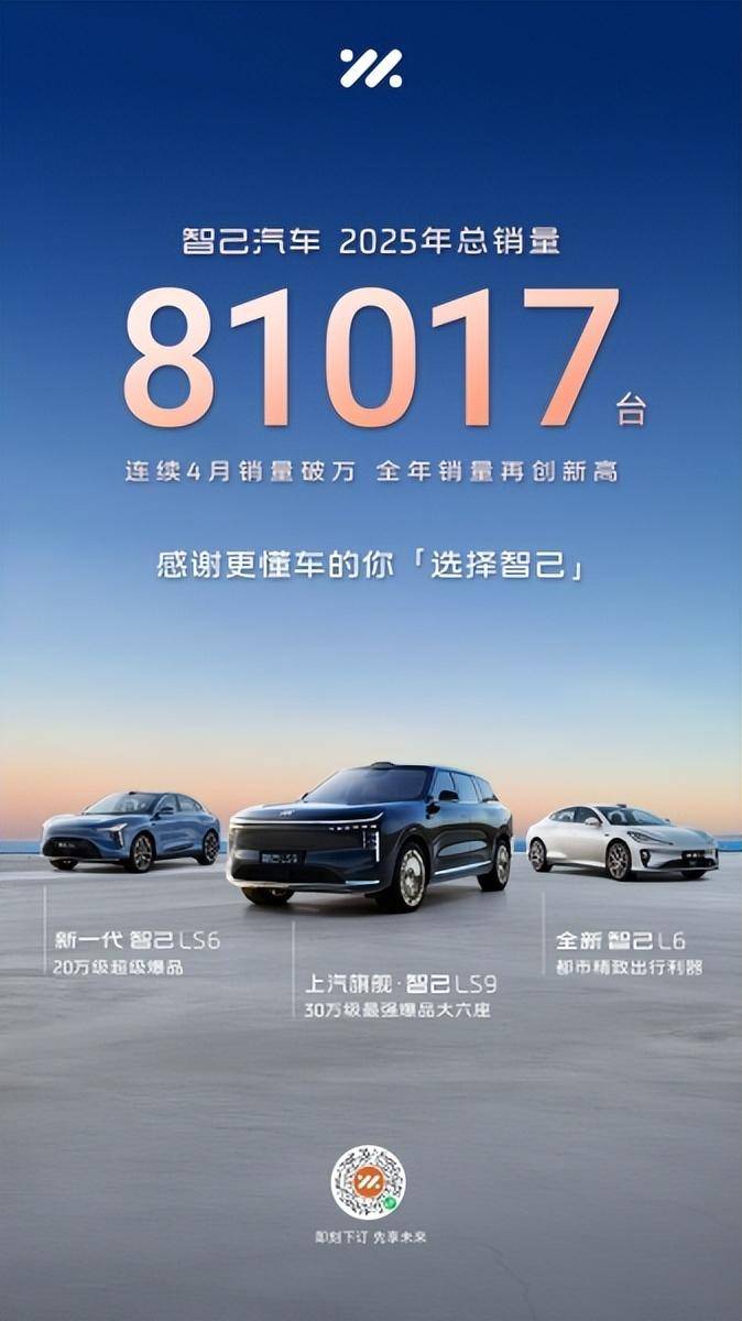 最新数据显示,智己汽车2025年全年累计销售81,017台,创历史新高;自9月起连续四月销量破万,接连刷新品牌月销纪录,增长势头强劲。尤为关键的是,在品牌成立五周年之际,智己于12月首次实现全成本口径盈利,开启高质量发展新阶段。