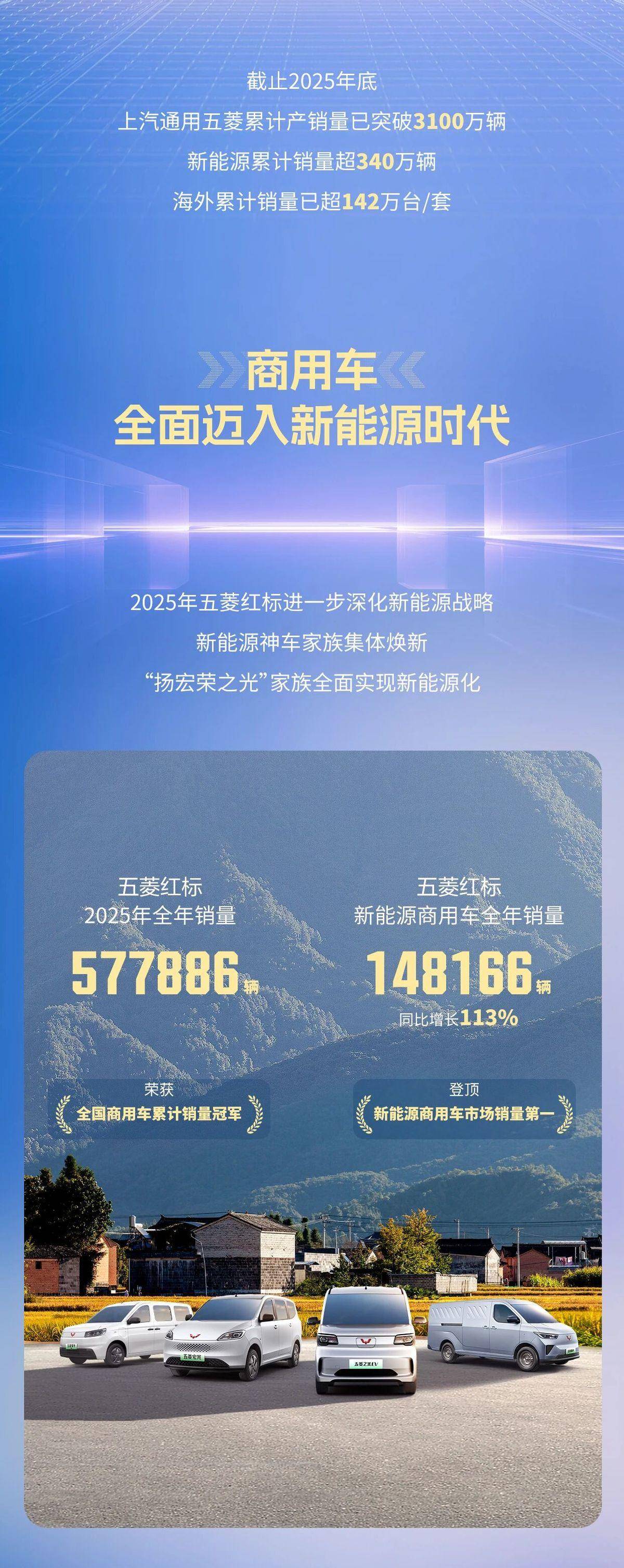 此外值得关注的地方就是五菱红标销量数据,可以说从2025年开始,五菱商用车全面迈入新能源时代,红标全年销量为577886辆,新能源车型为148166辆,同比劲增113%,荣获全国商用车累计销量冠军,登顶新能源商用车市场销量第一。而在之前召开的第二届奋斗者大会上,五菱红标家族集体亮相,像五菱荣光EV首次亮相,提供多元动力形式的灵活配置选择,为奋斗者带来更高效、更可靠的创富伙伴。再者宝骏汽车销量也在稳步提升,全年销量49002辆,同比增长12.3%,其2025年新增的宝骏享境、悦也Plus2026款等车型持续热销。