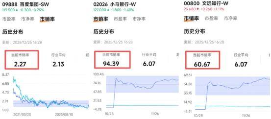 当前市场对不同业务形态的估值逻辑存在显著差异。百度整体市销率仅为2.27倍,而其广告业务收入连续多季度下滑,2025年第三季度同比下滑18%。相比之下,专注于自动驾驶赛道的小马智行市销率高达94.39倍,文远知行也达到60.67倍。这一巨大的估值鸿沟,本质上反映了市场对“混合业务”与“纯粹科技标的”的不同定价逻辑。