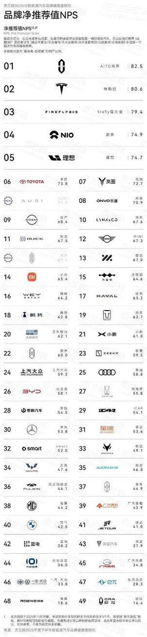 近日,杰兰路咨询发布《2025下半年新能源汽车品牌健康研究报告》。报告显示,问界荣获品牌NPS(净推荐值)第一、品牌发展信心指数第一、30万元以上品牌百人青睐指数第一;问界旗下“双旗舰王牌”,再添口碑佳绩:全景智慧旗舰SUV问界M9荣获车型NPS (净推荐值) 第一,家庭智慧旗舰SUV问界M8首次参评即荣获NPS (净推荐值) 第二。这一系列亮眼成绩,无不彰显问界在高端新能源赛道的引领地位。