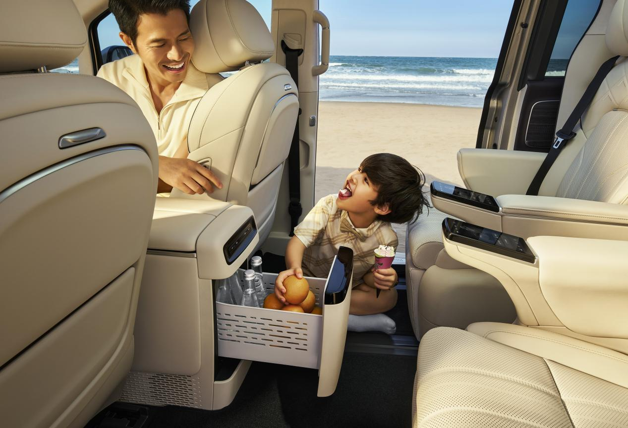 我儿子最喜欢的是后排娱乐系统,每次上车都会看动画片”。20个扬声器组成的音响系统,配合双层静音玻璃,即使高速行驶,车内依然安静。无线充电方面,车内提供了四个50W无线充电接口,能满足全家人同时充电的需求。
