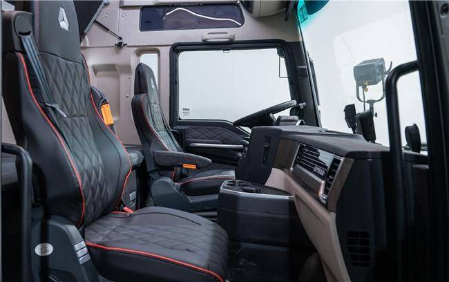 在征服外部世界的同时,车内则是用户专属的舒适港湾。其驾驶室不仅配备奢华内饰和减压卧铺,极大缓解长途驾驶的疲惫,更基于对国人驾驶习惯的深度洞察,实现底盘悬架、驾驶室气囊悬置、驾驶室座椅的联合调校,将振动频率控制在1Hz~1.5Hz之间,驾驶员能获得最舒适的驾驶体验,从而以最佳状态专注于前方路况。