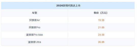 近日,官方消息显示,2026 款现代胜达已正式上市,本次共推出 4 款车型,指导价区间锁定 19.58 万至 26.88 万元。原 23.58 万元的鉴赏家 Pro 版本被取消,其余车型定价保持原有水平。新车新增 DMS 摄像头、驾驶分心疲劳监测系统及后排幼儿遗留感知功能,同时针对不同配置版本的辅助驾驶模块进行了优化调整。