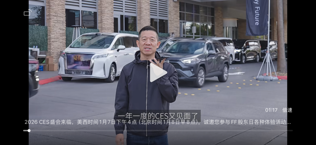 在CES 2026前半个月,贾跃亭就已经开始为1月7日(太平洋标准时间)即将举行的“FF股东日”特别活动预热。