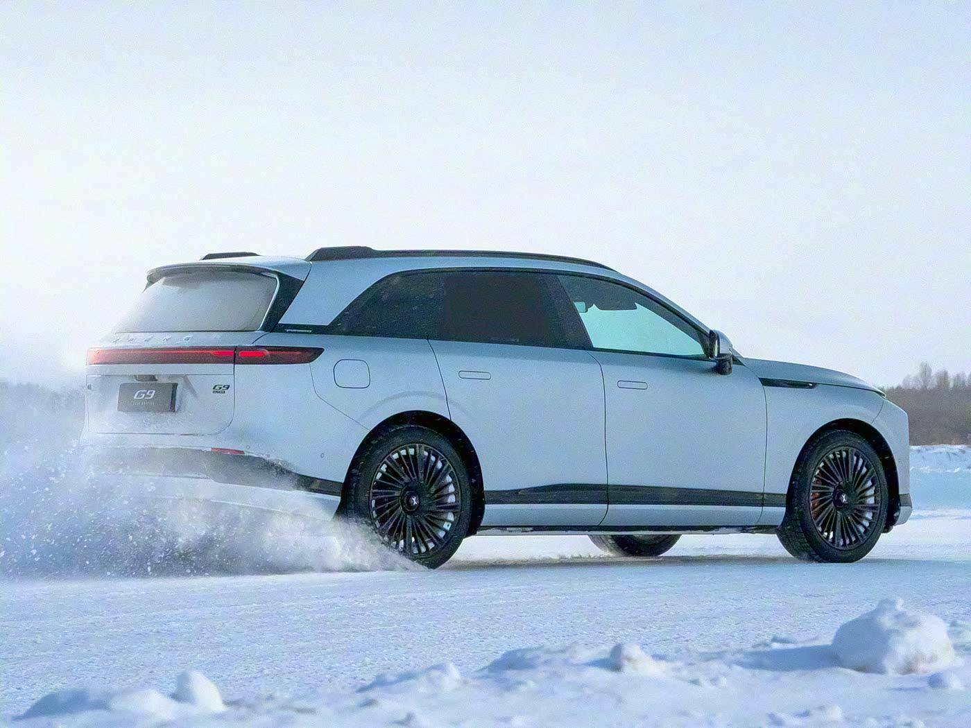 接着是小鹏G9,这是一台中大型SUV,同小鹏G6一样,新车整体也是延续了现款的设计。由于它的机盖没有做下压处理,所以给人的感觉非常大气,相比小鹏G6给人两种截然不同的感觉。