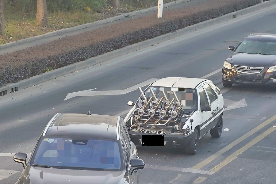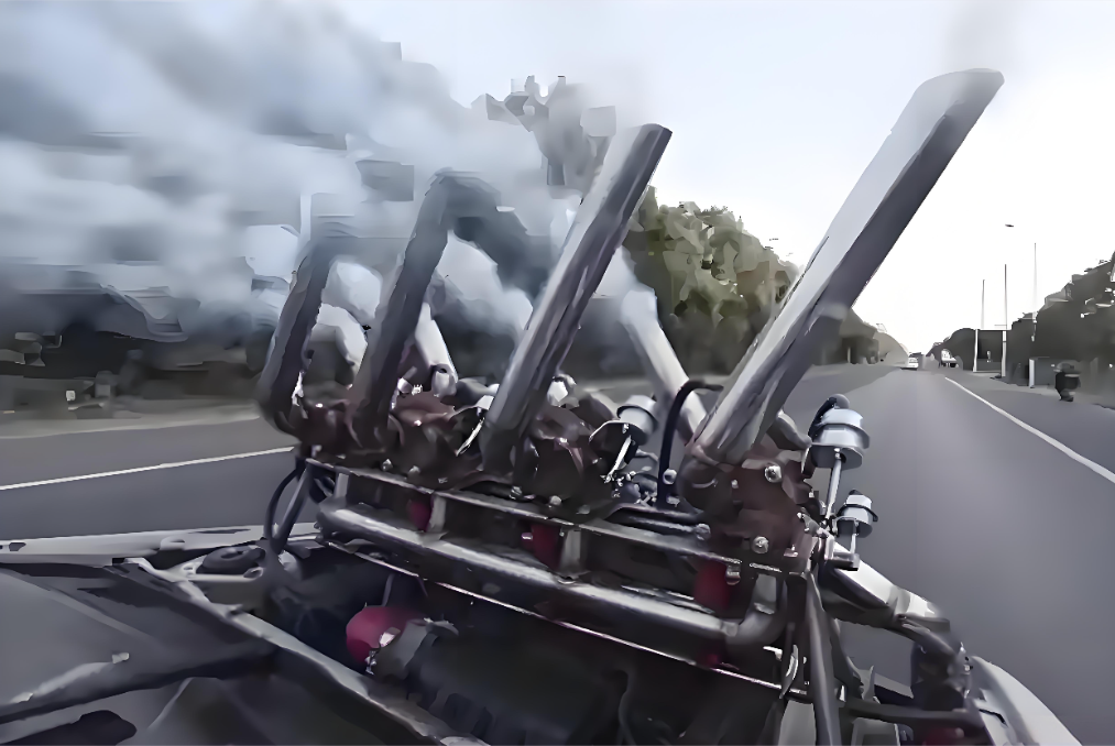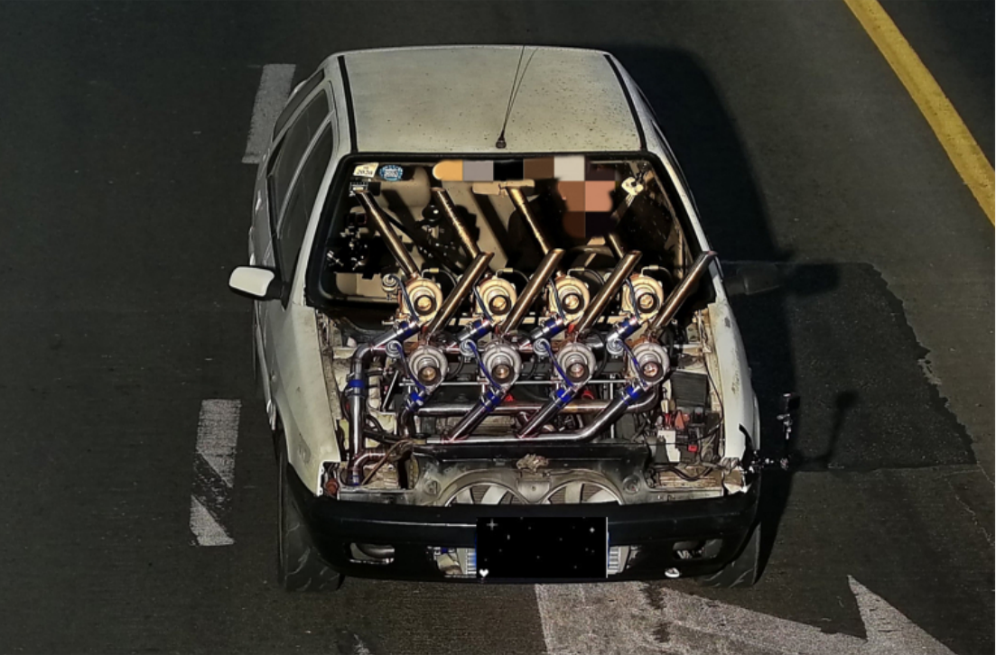 这一组图片来自赛车类自媒体博主王某发布的视频,该车辆显然不符合上路驾驶条件;其明确存在严重非法改装,量产车是不会允许引擎外露的,而且一定不会有数量多达八个的涡轮增压器,排气系统也不会如此设计。然而更加离谱的是王某所驾驶的车辆不仅涉及非法改装,改装车同时还是报废车辆;而王某就驾驶着这样一辆改装报废车在上海的公共道路上行驶甚至炫技,相关视频一经发布则引起广泛热议。