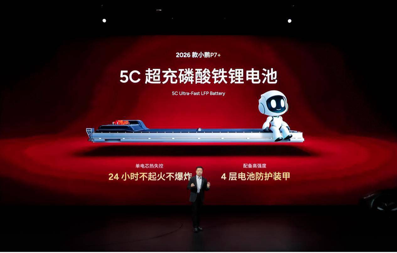 安全,是2026款小鹏P7+的核心基石。新车同步满足中国与欧洲双五星安全标准,树立智能电动轿车的安全新标杆。其搭载的5C超充磷酸铁锂电池,在热失控后可实现24小时不起火,安全性远超即将实施的2026年电池新国标要求;车身结构方面,采用全球最大吨位16000吨压铸机打造的量产最大一体式压铸后地板,并全系标配2000兆帕超高强度笼式车身,可承受高达800kN的冲击力,构筑起一座“移动的五星安全堡垒”。此外,P7+行业首发冰雪场景AES主动安全系统,精准应对复杂低温路况,为用户在各种出行环境中提供全方位、全天候的安全守护。