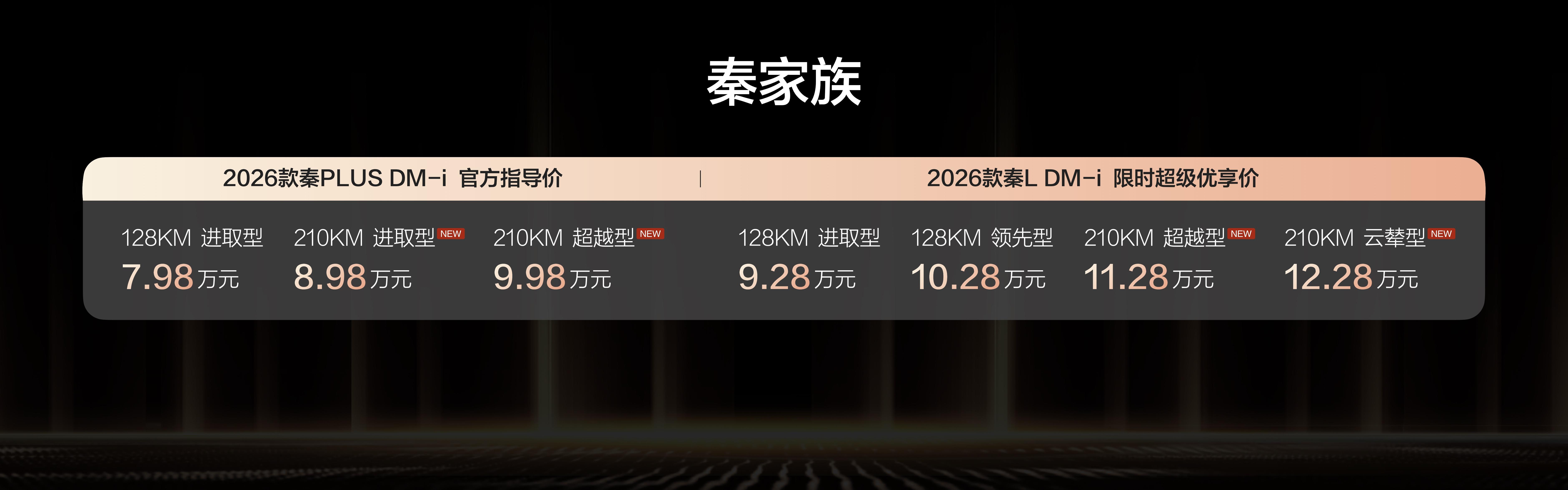 2026款秦L DM-i与2026款秦PLUS DM-i 210KM长续航版,凭借超长续航打破出行边界,以豪华科技配置重塑家轿体验,精准满足不同家庭需求。作为插混轿车的引领者,秦家族以硬核产品力和越级价值,必将成为2026年行业风向标,引领家轿市场迈向高品质发展新阶段。