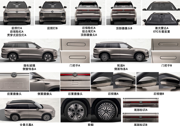 在申报图的细节放大中,车顶激光雷达和翼子板处的“小蓝灯”清晰可见——这是高阶智能驾驶硬件的典型特征。虽然官方尚未公布具体芯片、算力和功能细节,但可以预见,ID.ERA 9X将搭载一套支持城市NOA的高阶智驾系统。