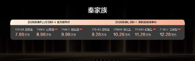 8.98万起!2026款秦家族DM-i 210KM长续航版上市