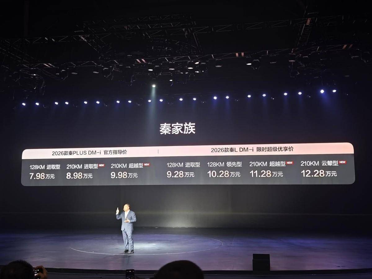 1月8日,比亚迪秦家族迎来2026款的焕新加推,2026款秦L DM-i /2026款秦PLUS DM-i 210KM长续航版双车同步上市,售价8.98-12.28万元。其中,2026款秦L DM-i 210KM长续航版限时优惠价为11.28-12.28万元,2026款秦PLUS DM-i 210KM长续航版售价8.98-9.98万元。