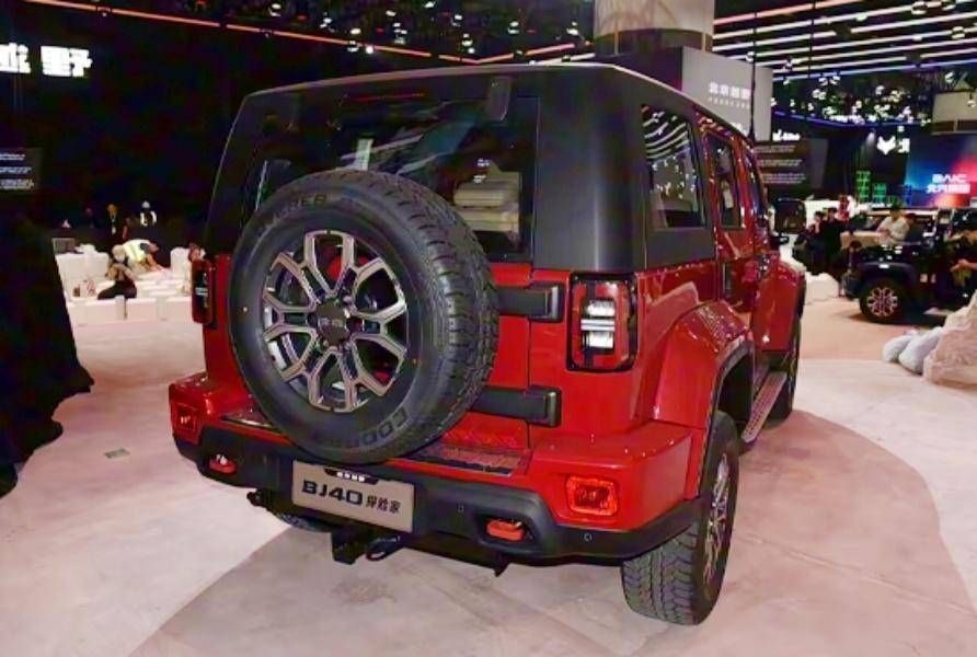车尾部分,新车沿用经典外挂式备胎与侧开门的组合设计,同时配备快拆式车顶结构,进一步夯实了硬派越野产品属性。通过性参数方面,该车最小离地间隙达 220mm,接近角与离去角分别为 37° 和 31°,充分满足复杂路况通行需求。