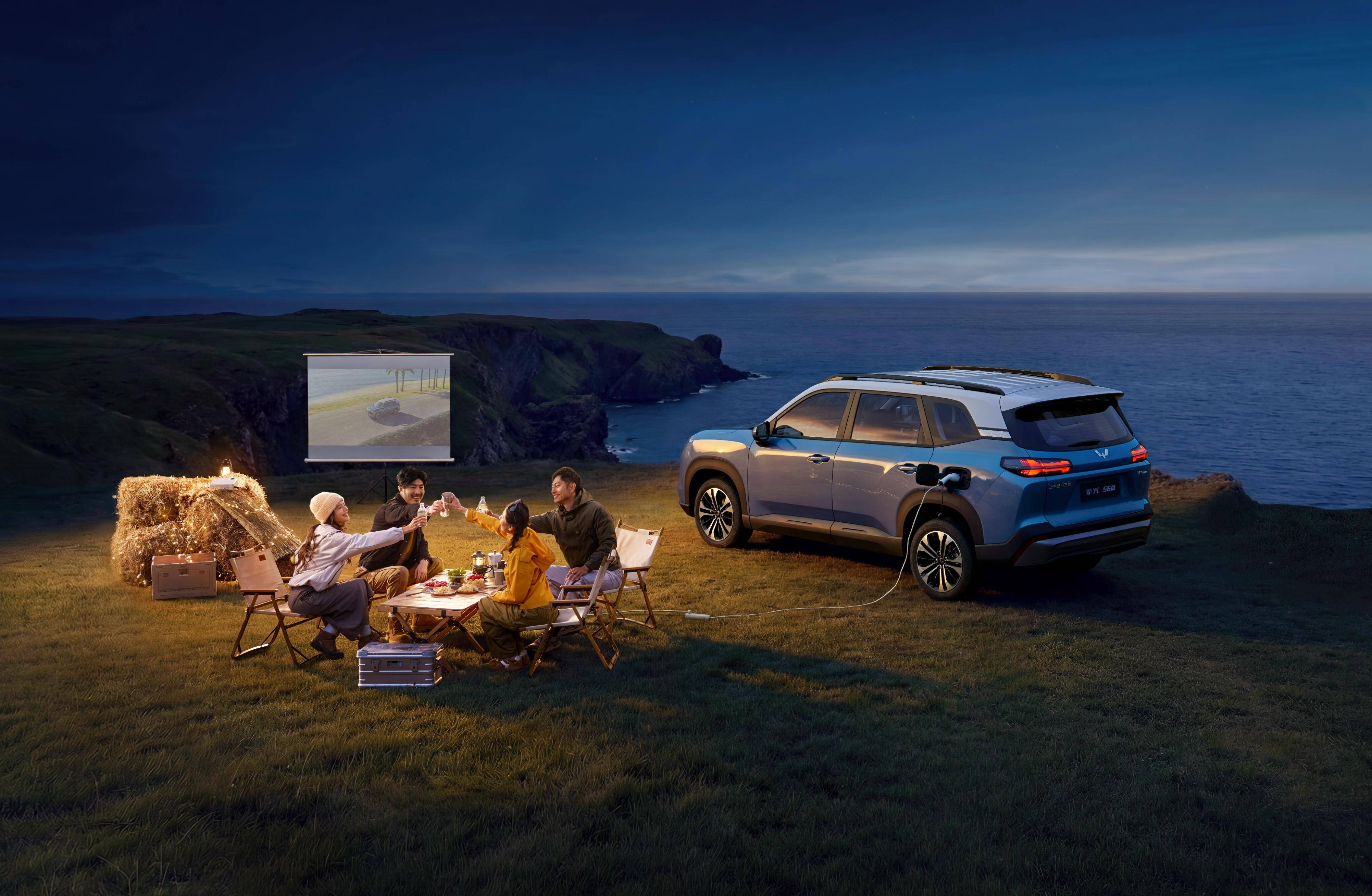 插混与纯电版均配备电池加热与智能保温功能,缓解冬季续航衰减,且支持220V外放电,可随时随地化身“移动电站”,为露营休闲、户外直播、移动摊位等场景提供便利。此外,车辆还搭载车顶行李架,进一步强化硬派风格与实用拓展能力。