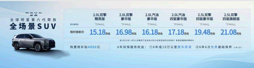 本次大会上,一汽丰田汽车销售有限公司副总经理 窦绘娟女士还发布了SUV家族各主力车型的限时购车政策,优惠直给,力度显著。