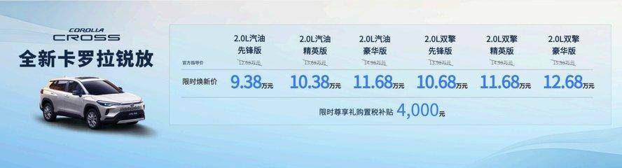 亲民之选锐放,聚焦城市通勤,原官方价格区间为12.68万元-15.98万元,限时焕新价格为9.38万元-12.68万元。订车用户额外享受 4000 元购置税补贴,高品质城市SUV触手可及。