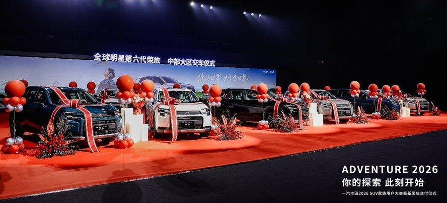 【有车开车资讯】2026年1月9日,一汽丰田在长沙举办“全新荣放交付仪式暨SUV家族大会”,宣布旗下重磅车型第六代全新荣放正式开启全国交付;同时,为回馈用户厚爱,包括全新荣放、普拉多、皇冠陆放及锐放在内的SUV家族全系车型,推出覆盖广泛、诚意十足的限时购车福利,以卓越产品力结合实在优惠,满足不同用户需求。