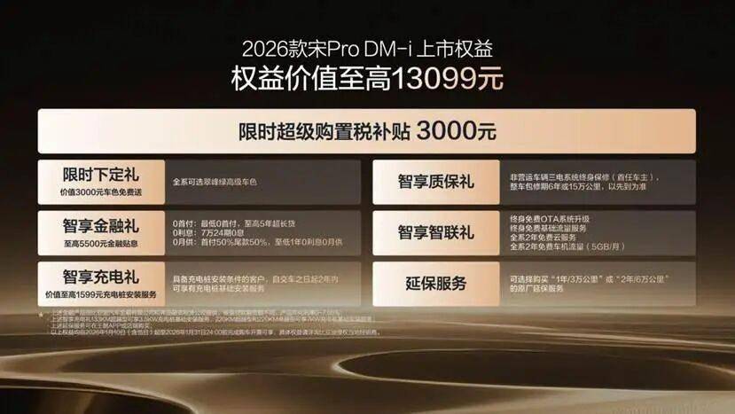 2026年1月10日,比亚迪正式宣布2026款宋Pro DM-i上新220km长续航版本,全系限时超级优享价9.98-12.78万元。