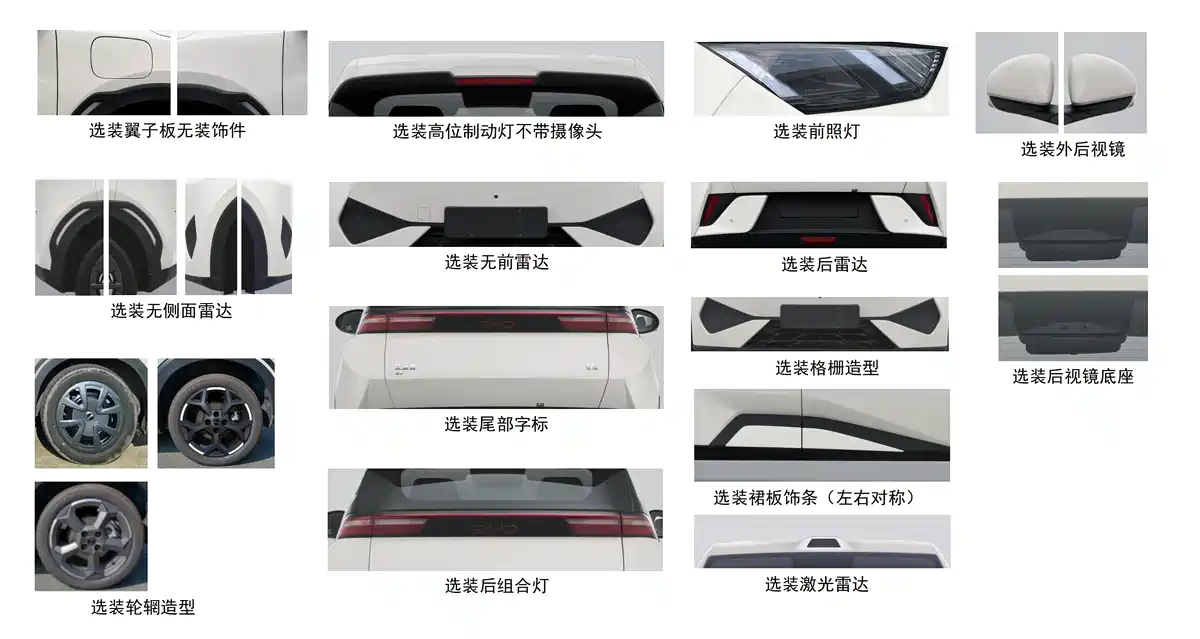 图片中申报的车辆并没有激光雷达,但从下图的选装件中可以看到有激光雷达的身影。据悉,新车将采用天神之眼B方案,支持高快领航和城区辅助驾驶系统。当然了,带激光雷达的版本大概率是高配,中低配应该和现款一样仅支持高速路段。