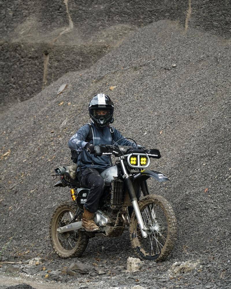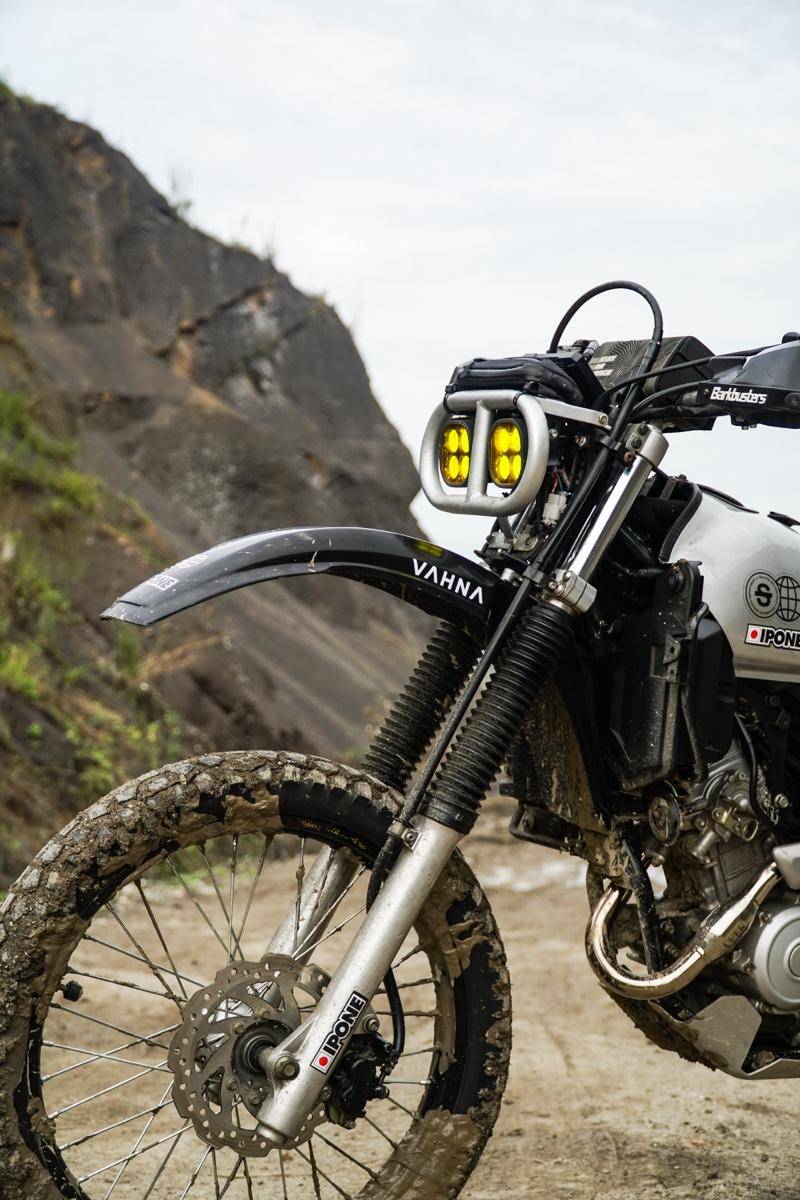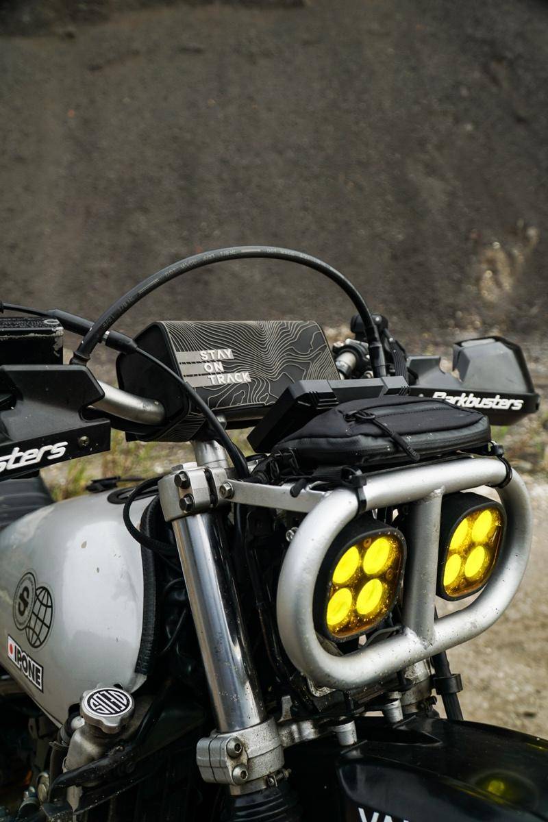 这辆车的主人兼主理人Pungky表示,这辆WR155R伴随他度过了三年的通勤与探险时光,为了让它更有80、90年代那种越野拉力赛的味道,他找上了Wasaka Motorcycle合作,开发出一套极具识别度的Baja风格双LED大灯组。
