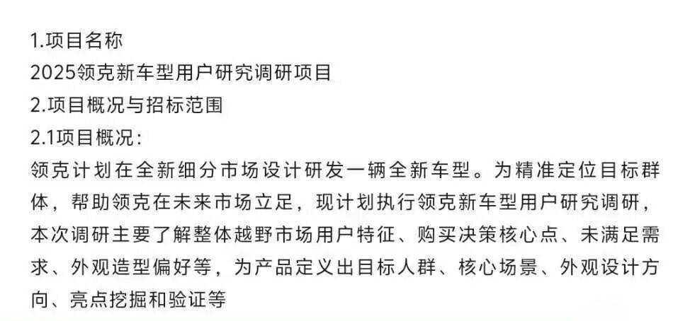 去年年末,领克开展了一次有关越野车的用户调研,或许是已经在为接近完成开发的泛越野车型做上市前的定位诊断调研。