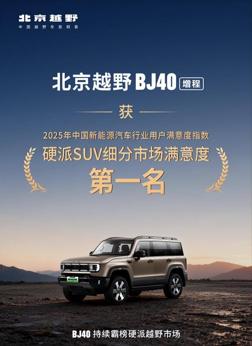这份成功,也获得了权威品质机构的印证。在中国质量协会2025年新能源汽车用户满意度指数测评中,BJ40增程荣获硬派SUV细分市场用户满意度第一。同时,北京越野品牌也获评 “市场质量信用AAA企业”。销量与口碑的双重认可,让来自国家殿堂的荣誉,在用户端得到了扎实的回响。