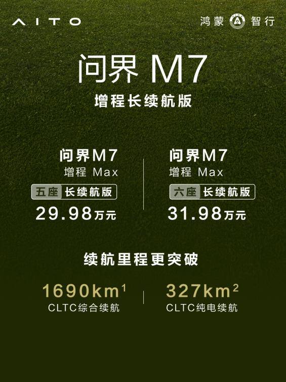 全新问界M7增程长续航版也于当日正式上市,其中增程Max五座长续航版售价29.98万元起,增程Max六座长续航版售价31.98万元起,即刻下定的用户,可享受至高60000元的购车权益,以诚意福利助力用户轻松购车。