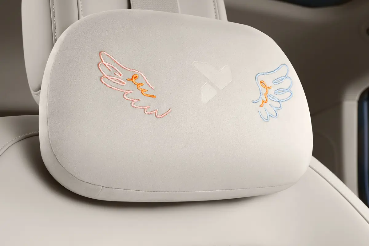 不仅外观方面做出区分,内饰方面也同样进行调整。车内以米色麂皮材质营造出高级感与温暖氛围,飞马羽翼刺绣软枕/腰靠、天马主题低碳与定制车机主题形成视觉闭环,相信很多年轻的女性消费者定会被其“拿捏”。