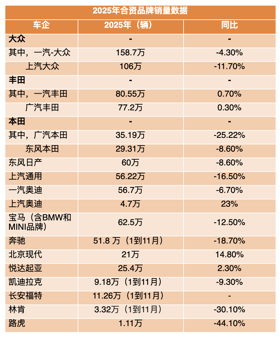 下面我们选取部分主流合资品牌,简单盘一盘它们2025年的KPI。