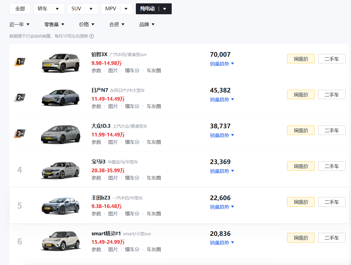 顺便提一嘴,铂智3X全年销量70007辆,是合资纯电销冠。