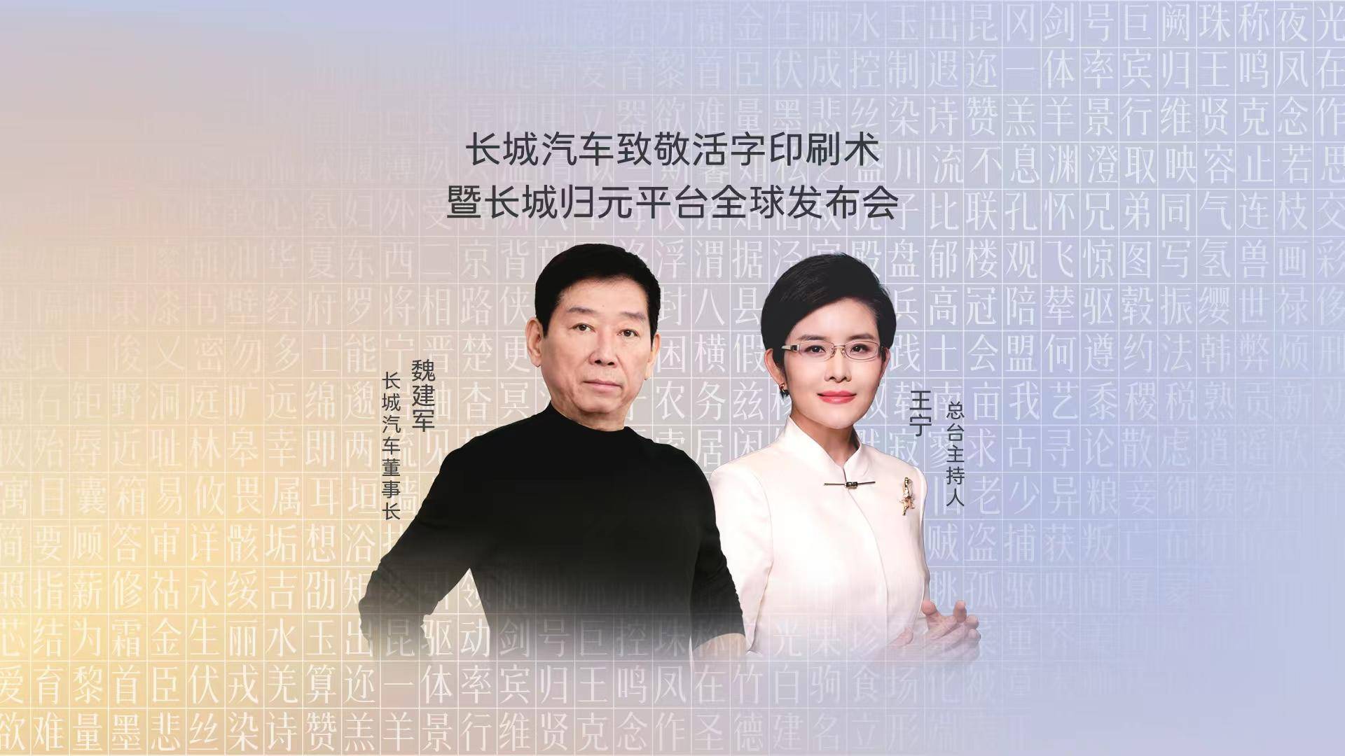 车企发布会还能玩出文化与科技的双向奔赴?一边是温州瑞安的千年活字文脉流淌,一边是河北保定的现代工业硬核发力,跨两地同步直播,用非遗智慧重构汽车平台逻辑?1月16日17:00,长城汽车致敬活字印刷术暨归元平台全球发布会重磅启幕,长城汽车董事长魏建军携手央视新闻主持人王宁,以虔敬之心溯源千年智慧,用创新之魂勾勒未来出行蓝图。这场跨越时空的对话,到底藏着多少颠覆行业的真干货?