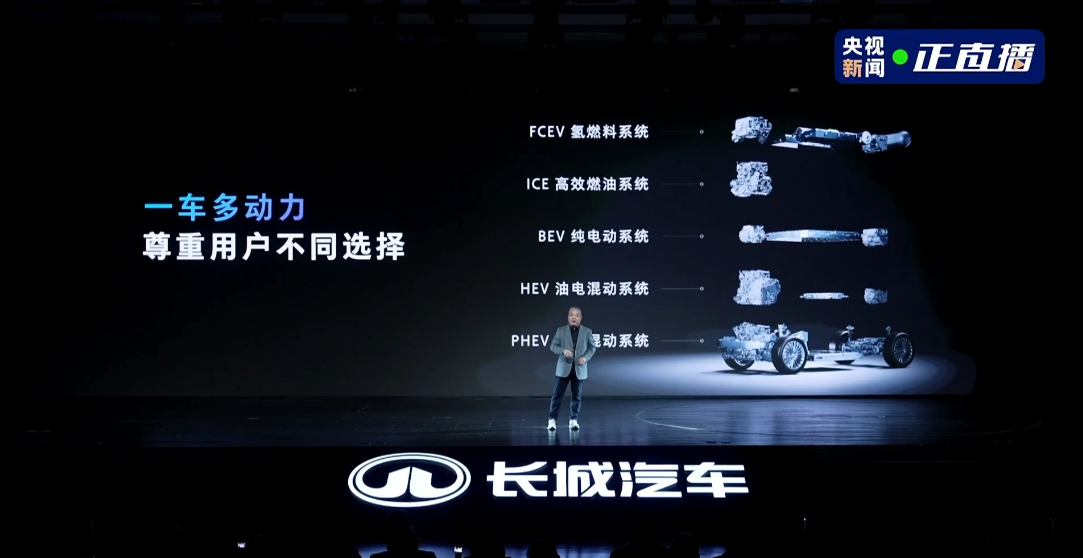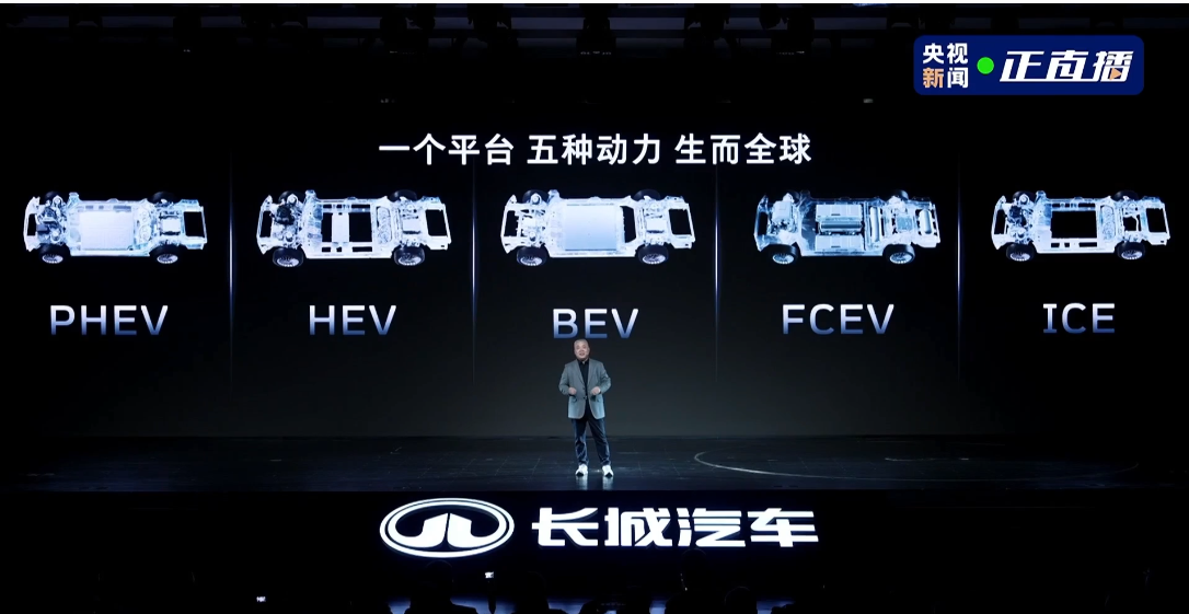 这并非空谈,归元是行业唯一兼容PHEV、HEV、BEV、ICE、FCEV五大动力形式的平台。充电便利可选纯电,长途出行可选混动或燃油,想尝鲜可试氢能;同时能衍生SUV、轿车、MPV、皮卡等全品类车型,适配家庭、越野、商务等多元场景。魏建军强调的“把选择权交给用户”,在归元平台上得到扎实落地。