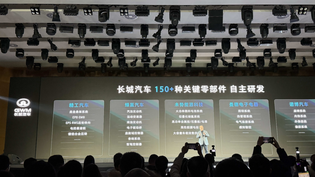 除发动机、电池、电机、电控等核心部件外,归元平台上的空悬、转向器、座舱域控制器、智驾域控制器、空调等150种关键零部件都是长城自研,极大降低了不同动力车型零部件的通用化适配难度。