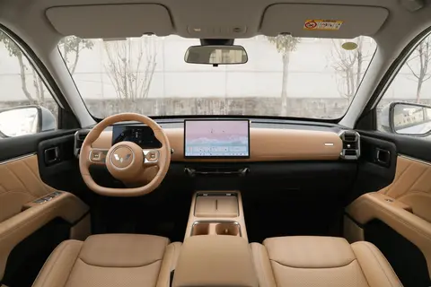 不过燃油版车型与纯电以及插混版车型在车内副仪表区域还是存在一定差别的,燃油版车型搭载机械式挡把,而纯电以及插混版车型呢则搭载电子怀挡的设计,整体要更显高级一些;同时车内大面积皮质材料的应用以及双拼颜色的混搭,的确与大家印象中的五菱完全不同。